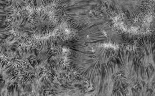 Activité solaire Nous approchons le minimum du cycle solaire Nr 24, le 24ème depuis 1755, un cycle ayant une durée de 11 ans. Ce cycle 24 était moins actif que les précédents. Le minimum d'activité actuel donne une probabilité de 42% d'avoir des taches solaires. Pas de tache ne signifie pas qu'il n'y a pas d'activité, comme le montre l'image suivante. Elle a été prise sur une zone d'activité locale forte, qui a perduré pendant toute la rotation du soleil.