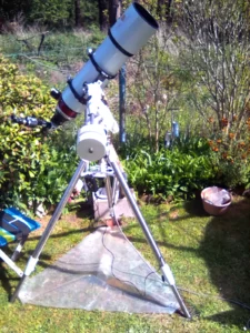 Une lunette LUNT 152, sans oculaires d’origine mais je donne une bino + 2 oculaires 25mm, 1 barlow TéléVue 1.8x.