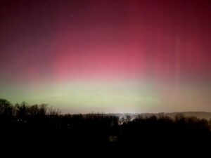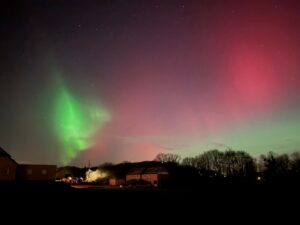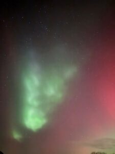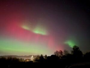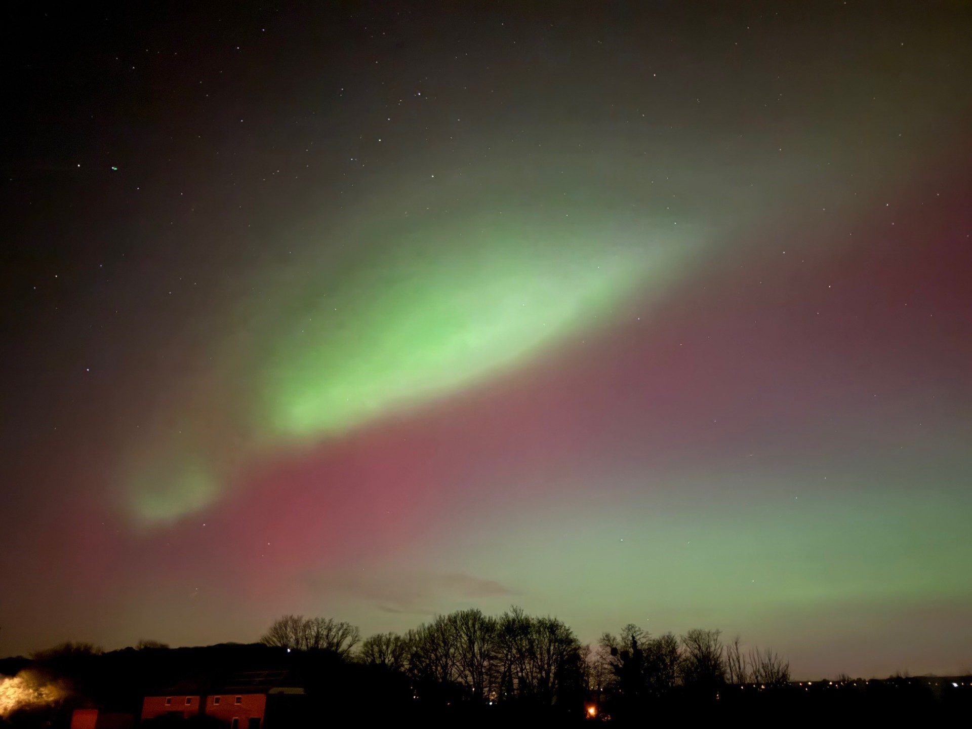 Un moment exceptionnel et quasiment irréel sous nos latitudes, ici capturé au smartphone dans la région d’Aywaille, à main levée, en mode « nuit » automatique avec des poses de 3 secondes, entre 22h30 et 23h00. Ces poses sont un peu trop longues pour bien saisir les lueurs vertes extrêmement rapides et éphémères visibles jusqu’au zénith, ça sature aussi, certes, mais il faut reconnaitre que l’appareil ne fait quand même pas mal le job quand il faut saisir au vol. Pas de traitement en dehors de réduire un peu la saturation des couleurs.