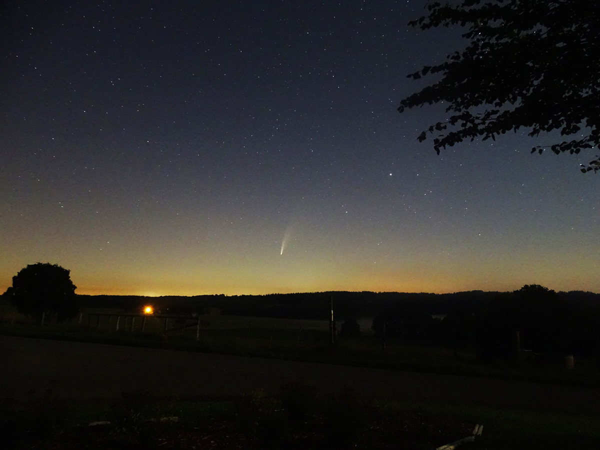 Un appareil grand public Sony dsc hx400V posé sur un banc de bois avec 30s de pose et déclenchement différé. Un souvenir du passage de cette belle comète sous le ciel de Sperpigny Andre Fryns