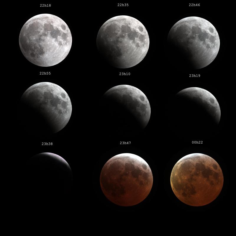 Voici un panel reprenant les diverses phases de l’éclipse: