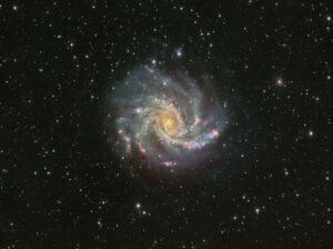 NGC 6946, surnommée la galaxie du Feu d’artifice, est une galaxie spirale intermédiaire vue presque de face et située à cheval sur les constellations du Cygne et de Céphée, à environ 20 millions d’années-lumière de la Voie lactée.