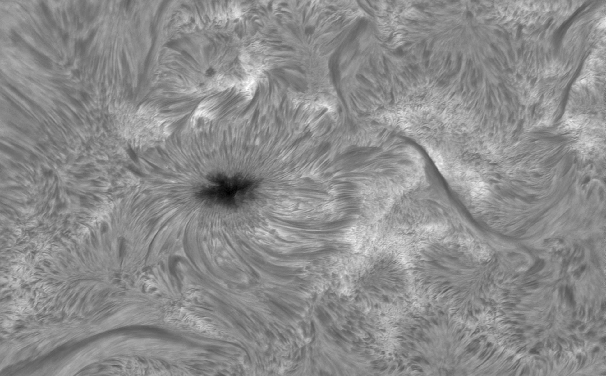 Une vue du filament sous la tache, avec une gestion des contrastes un peu plus poussée.