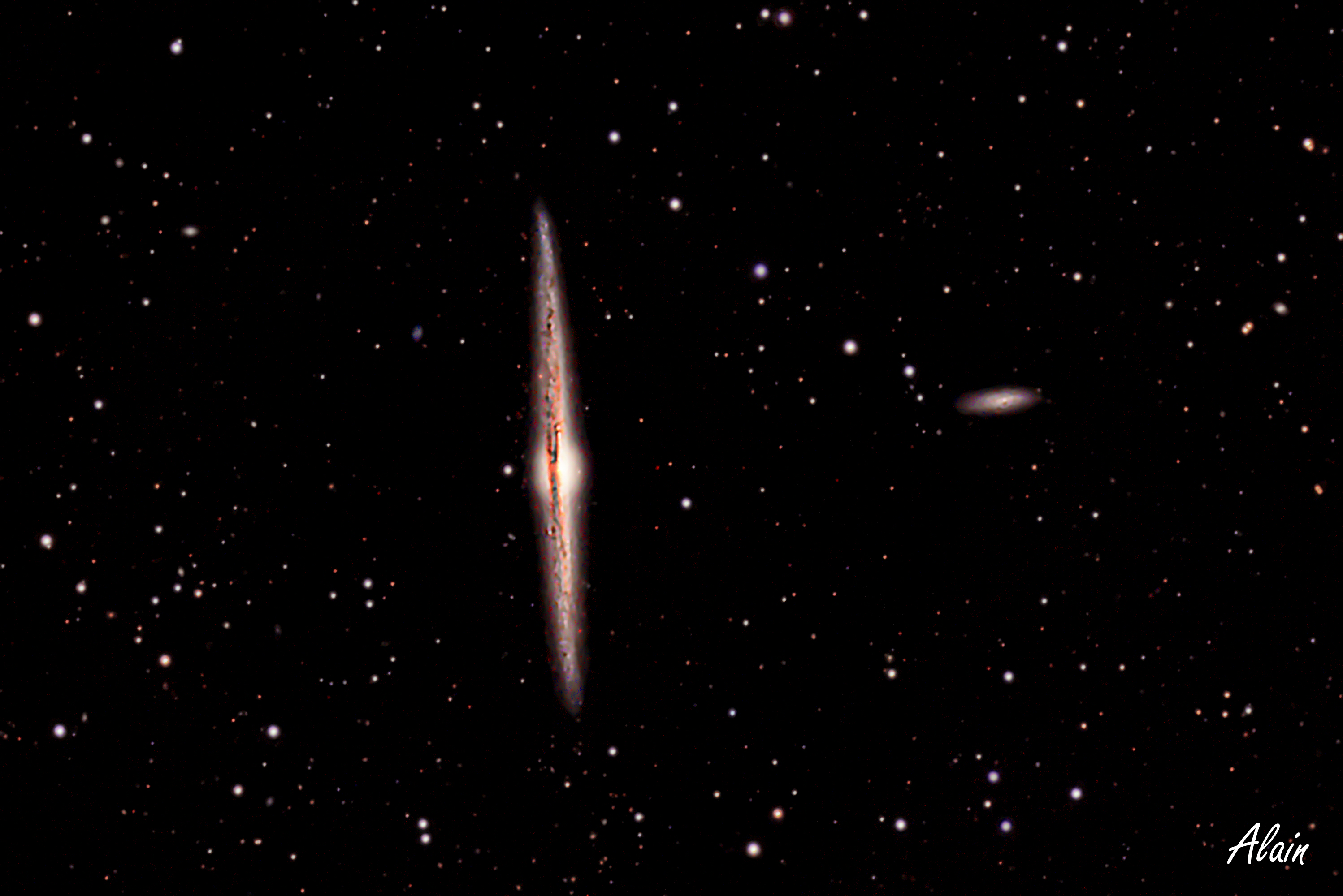 Hier, lorsque j’ai voulu traiter les photos brutes (LRGB), je me suis rendu compte que pour cette galaxie j’ai fait des poses de 6 minutes en pensant faire des poses de 5 minutes … et je n’ai que des darks de 5 minutes à ma disposition. Je ne sais pas si ça change grand-chose ?