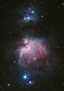 Un crop en taille réelle centré sur la Grande Nébuleuse d’Orion accompagnée du « Running Man »: