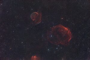SH2- 224 dans le Cocher. Rémanent de supernova de forme plutôt originale.