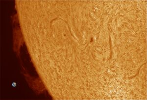 Sur le disque on voit deux taches, des filaments et l’activité fibrillaire.